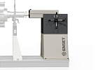 Шпиндель осевого привода имеет продольную подвижность для удобства присоединения к валу изделия и нормально замкнутую пневматическую блокировку этого перемещения.